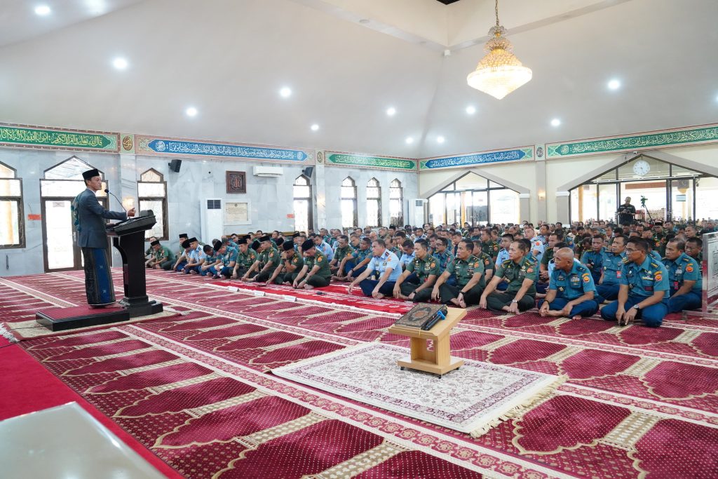 Puspen TNI – Panglima TNI Jenderal TNI Agus Subiyanto menghadiri Ceramah Rohani Islam dalam rangka peringatan Nuzulul Quran 1446 H/2025 M yang mengusung tema “Kuatkan Aqidah, Mantapkan Ibadah, Perbanyak Sedekah serta Tingkatkan Iman dan Takwa di Bulan Suci Ramadhan” dengan pecemah Kh. Sumarno Syafi’i, LC., bertempat di Masjid Panglima Soedirman Mabes TNI, Cilangkap, Jakarta Timur, Senin (17/03/2025).