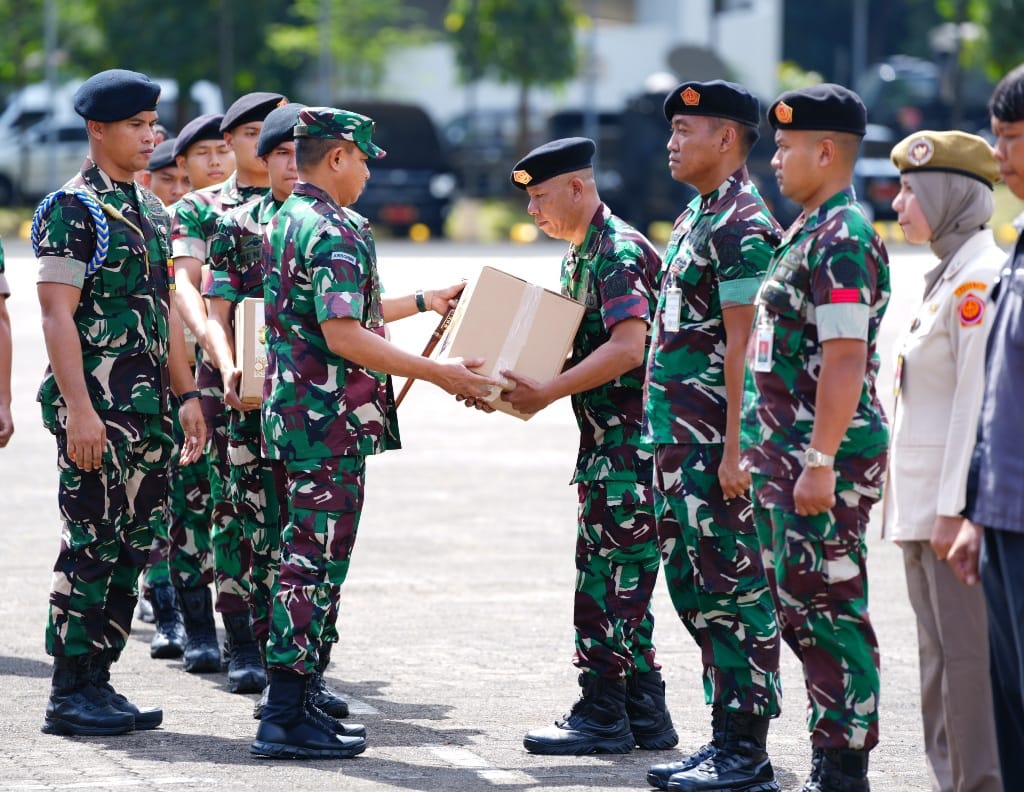 Puspen TNI – Menjelang Idul Fitri 1446 H/2025 M, Panglima TNI Jenderal TNI Agus Subiyanto memimpin Apel Khusus dan menyerahkan 5.990 paket sembako kepada prajurit, PNS, PHL, dan Office Boy (OB) di Mabes TNI, Cilangkap, Jakarta Timur, Jumat (21/3/2025).