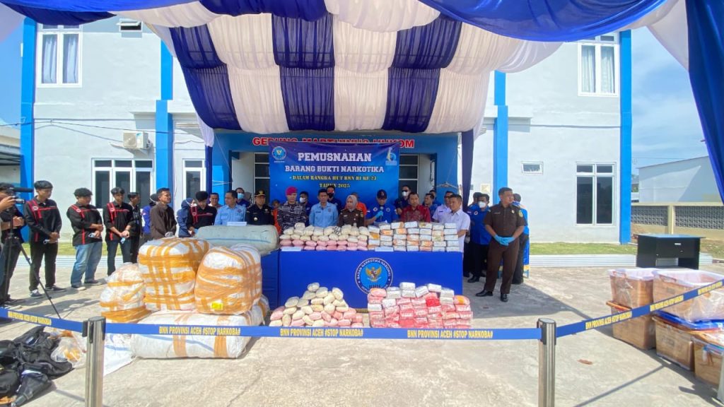 TNI AL – Dispenlantamal3. “Narkoba yang dimusnahkan tersebut merupakan barang bukti penindakan BNN Provinsi Aceh dan TNI AL dalam rentang waktu tiga bulan terakhir”. Hal tersebut diungkapkan oleh Kepala BNN Provinsi Aceh Marzuki Ali Basyah saat pemusnahan barang bukti narkoba, di halaman Kantor BNN Provinsi Aceh di Banda Aceh, Kamis (20/03). Dalam kesempatan ini turut hadir Perwira Staf Intelijen (Pasintel) Pangkalan TNI AL Lhokseumawe Mayor Marinir Dian Prayudi serta sejumlah pejabat terkait, Kamis (20/03/2024).