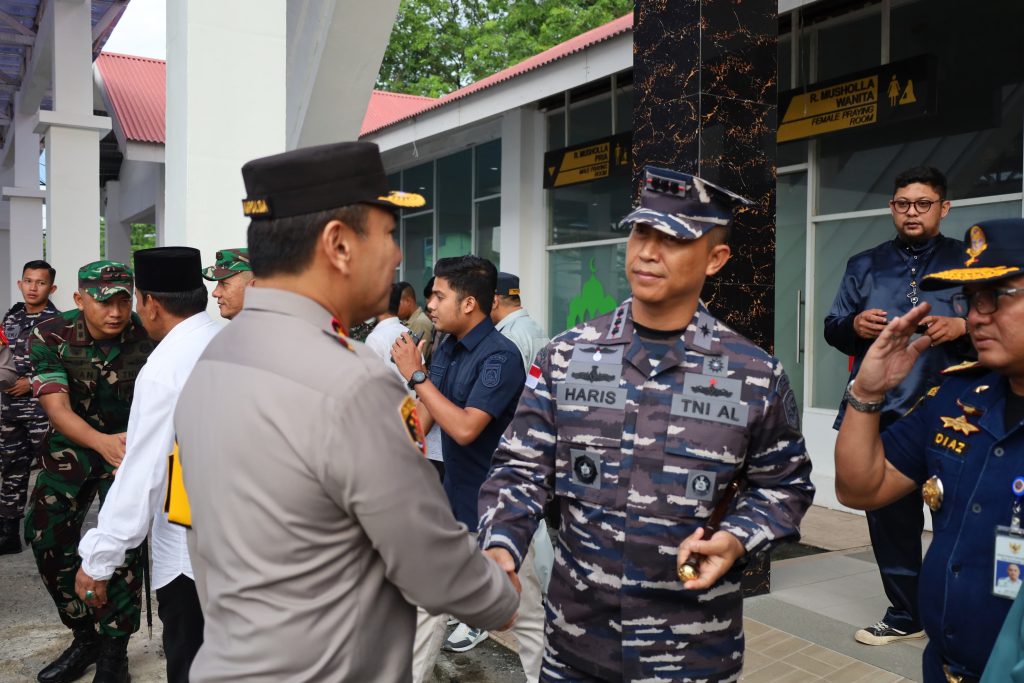 TNI AL, Dumai, 28 Maret 2025,- Pastikan keamanan dan keselamatan masyarakat pengguna jasa transportasi laut jelang perayaan Idul Fitri 1446 H/2025 M, Komandan Lanal Dumai Kolonel Laut (P) Abdul Haris bersama dengan Kapolda Riau Irjen Pol Dr. Hery Herjawan, S.I.K., M.H., M.Hum., dan rombongan melaksanakan peninjauan pos pengamanan Idul Fitri.