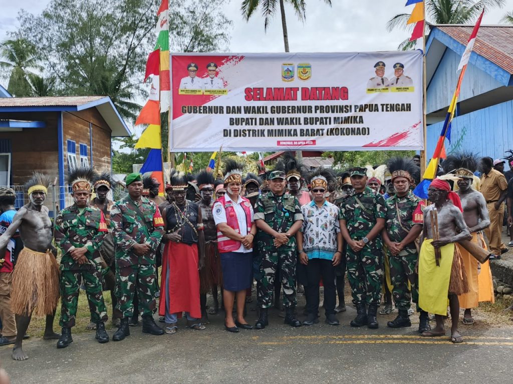 Timika – Komandan Komando Distrik Militer (Dandim) 1710/Mimika Letkol Inf M. Slamet Wijaya, S.Sos, M.Han, M.A mendampingi Gubernur Papua Tengah bapak Fritz Nawipa, S.H dalam kunjungan kerja (kunker) ke wilayah Distrik Mimika Barat Kab. Mimika, Kamis (10/04/2025).