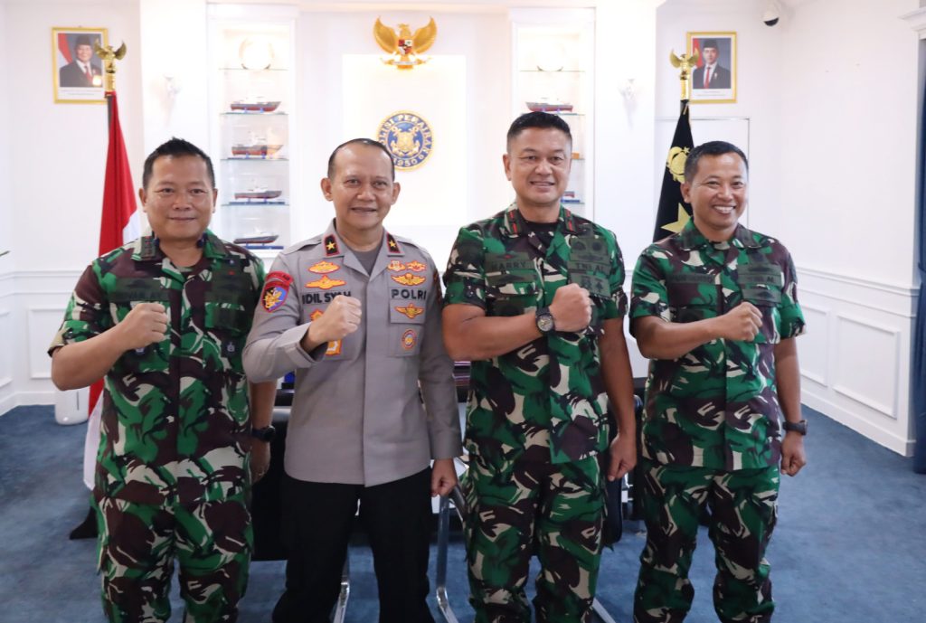 TNI AL-Dispenlantamal3. Komandan Pangkalan Utama TNI Angkatan Laut (Danlantamal) III Jakarta Brigjen TNI (Mar) Harry Indarto, S.E., M.M. mengadakan kunjungan kerja ke Direktur Kepolisian Perairan Korps Kepolisian Perairan dan Udara Badan Pemelihara Keamanan (Dirpolair Korpolairud Baharkam) Polri Brigjen Pol Idil Tabransyah, S.H., M.M. bertempat di kantor Ditpolair Jl. R.E. Martadinata I No. 1 Tanjung Priok, Jakarta Utara, Senin (14/04/2025).