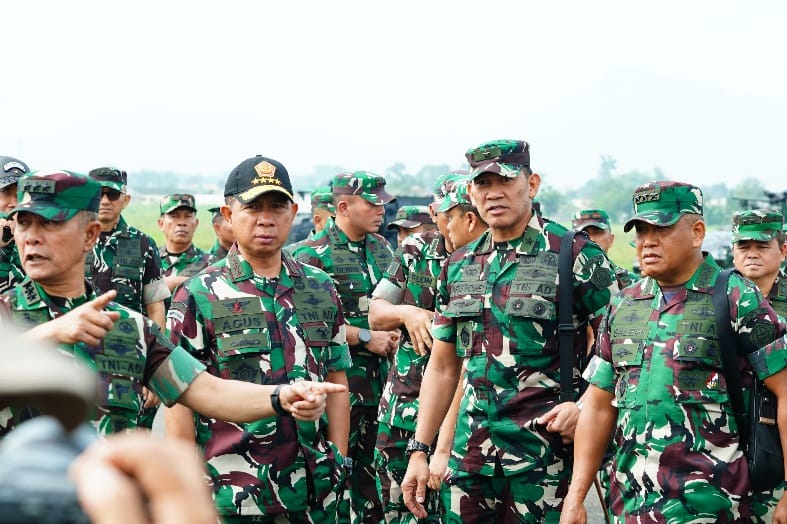 Puspen TNI – Panglima TNI Jenderal TNI Agus Subiyanto meninjau secara langsung kesiapan pelaksanaan upacara tradisi kehormatan militer yang akan digelar di Landasan Suparlan, Pusat Pendidikan dan Latihan Pasukan Khusus (Pusdiklatpassus) TNI AD, Batujajar, Jawa Barat, Kamis (17/4/2025). Kegiatan upacara tradisi kehormatan militer ini direncanakan akan digelar pada bulan Juli 2025, dan Presiden RI direncanakan bertindak selaku Inspektur Upcara.