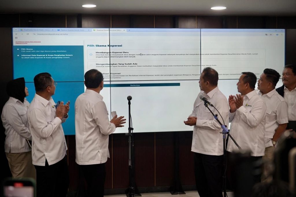 Jakarta – Menteri Koperasi (Menkop) Budi Arie Setiadi melakukan Kick-Off peluncuran platform kopdesmerahputih.kop.id yang merupakan situs resmi pendaftaran Koperasi Desa/Kelurahan Merah Putih secara self-declare, di Jakarta, Senin (21/4).