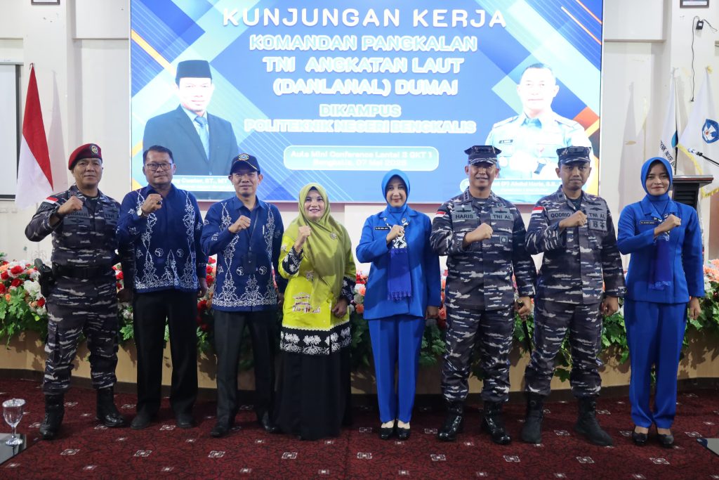 TNI AL, Bengkalis,- Dalam rangka meningkatkan kepedulian terhadap dunia pendidikan, Komandan Lanal Dumai Kolonel Laut (P) Abdul Haris didampingi oleh Ketua Jalasenastri Cabang 4 Korcab l DJA I Ny. Dewi Abdul Haris melaksanakan kunjungan ke Politeknik Negeri Bengkalis, Rabu (07/05/2025).