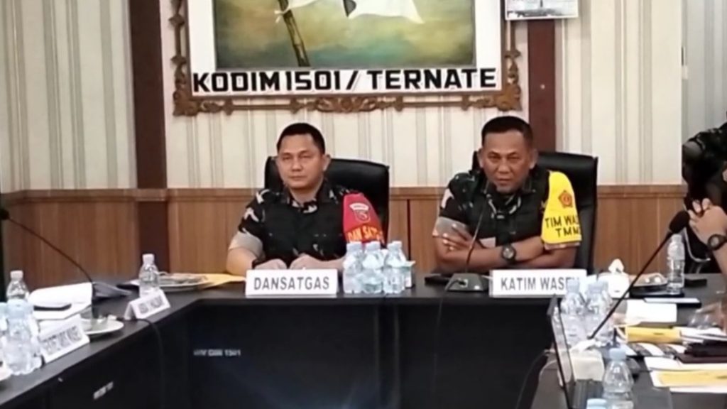 Ternate – Dandim 1501/Ternate, Letkol Inf Jani Setiadi, memaparkan perkembangan pelaksanaan program TNI Manunggal Membangun Desa (TMMD) Ke-124 tahun 2025 di wilayah Kodim 1501/Ternate kepada Tim Wasev di Makodim 1501/Ternate. Kamis (15/5/2025).