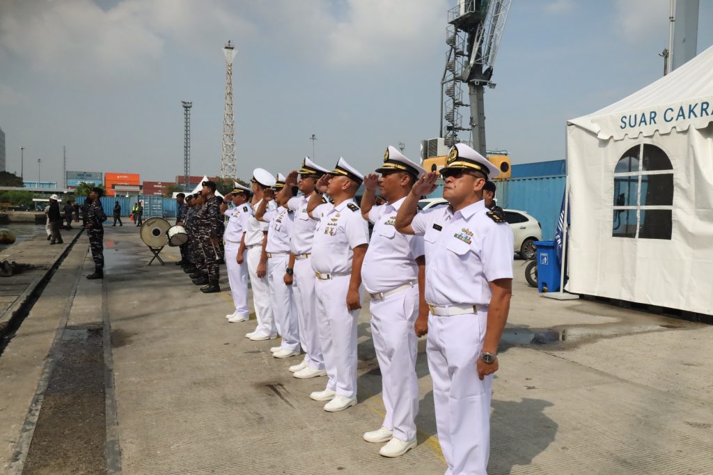 Jakarta, 16 Mei 2025 – Komandan Lantamal III Jakarta Brigjen TNI (Mar) Harry Indarto, S.E., M.M. diwakili oleh Letkol Laut (P) Joseph Marteen Marpaung, melepas keberangkatan kapal perang Angkatan Laut Italia, ITS Antonio Marceglia (F 597) di dermaga Tanjung Priok, Jakarta Utara, Jumat (16/5).