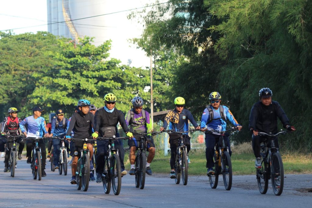 TNI AL, Dumai,- Dalam rangka meningkatkan kesehatan dan kebugaran tubuh, Danlanal Dumai Kolonel Laut (P) Abdul Haris S.E., M.M.D.S., bersama Pejabat Utama (PJU) dan Perwira Staf Lanal Dumai melaksanakan kegiatan bersepeda gembira. Kegiatan ini tidak hanya bertujuan untuk meningkatkan kebugaran tubuh, tetapi juga sebagai sarana untuk mempererat silaturahmi serta memupuk kekompakan dalam berkerja sama antar Perwira, Sabtu (17/5/2025).