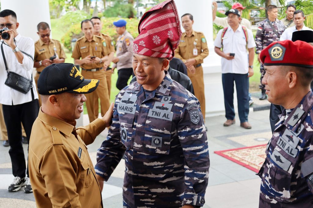 TNI AL, Bengkalis,- Hangat dan penuh penghormatan, Wakil Bupati Bengkalis Dr. H. Bagus Santoso bersama Forkopimda Kabupaten Bengkalis sambut kedatangan Danlanal Dumai Kolonel Laut (P) Abdul Haris S.E., M.M.D.S., beserta rombongan. Dengan tradisi khas tabuhan kompang serta pemasangan tanjak, Danlanal Dumai disambut di Wisma Daerah Sri Mahkota Bengkalis, Senin (19/5/2025).