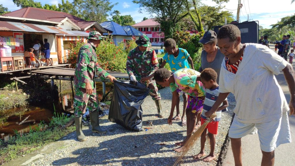Timika – Dalam rangka menciptakan lingkungan yang bersih dan sehat, Satgas TNI Manunggal Membangun Desa (TMMD) Kodim 1710/Mimika bersama masyarakat melaksanakan kegiatan bersih-bersih di sekitar lokasi kegiatan TMMD Reguler ke-124, di Kampung Pigapu, Distrik Iwaka, Kab. Mimika. Rabu (21/5/2025).