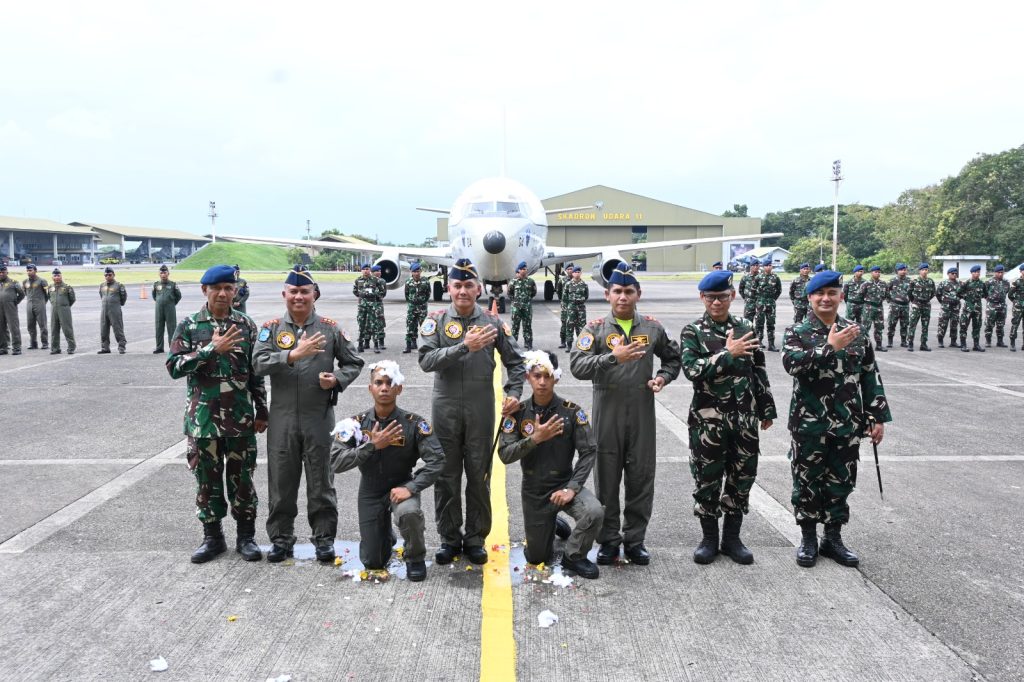 Marsma TNI Arifaini Nur Dwiyanto menyampaikan apresiasi serta harapan kepada para penerbang muda agar terus meningkatkan kemampuan, kedisiplinan, dan profesionalisme dalam menjalankan tugas. “Saya mengucapkan selamat kepada Letda Pnb Rivaldo Marbun (Camar Number 80), dan Letda Pnb Bryan Luthfan (Camar Number 81) yang secara resmi menjadi bagian dari keluarga besar Skadron Udara 5,” ucapnya.