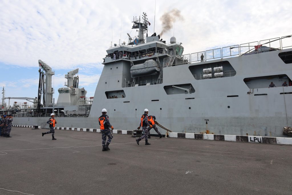 On board di KRI Bontang-907 sebagai kapal markas, Komandan Gugus Keamanan Laut Koarmada I Laksamana Pertama TNI Anung Sutanto, S.Sos., M.Si., M.Han., dengan didampingi Asintel Danguskamla I Kolonel Laut (P) Wahyu Rozana.