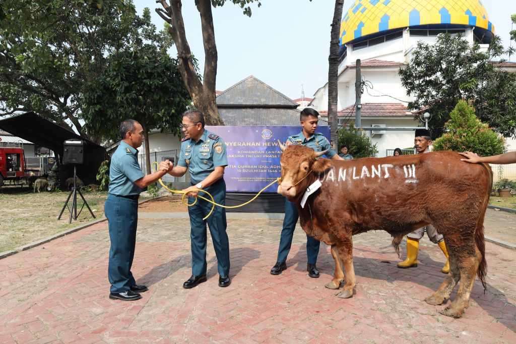 Jakarta, 5 Juni 2025 – Dalam rangka menyambut Hari Raya Iduladha 1446 H/2025 M, Komandan Lantamal III Laksamana Pertama TNI Uki Prasetia, S.T., M.M. melaksanakan penyerahan hewan kurban secara simbolis yang bertempat di masjid Miftahul Jannah Lantamal III, Jl. Gunung Sahari Ancol, Jakarta Utara, Kamis (5/6).