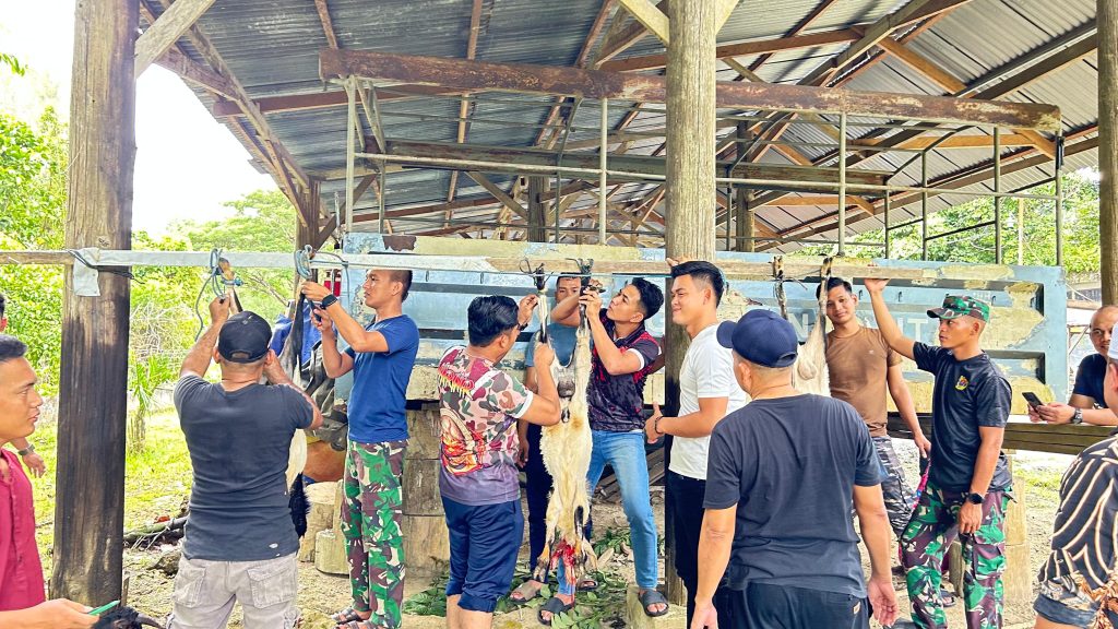 TNI AL, Simeulue,- Dalam rangka memperingati Hari Raya Idul Adha 1446 H/2025 M, Pangkalan TNI AL Simeulue melaksanakan kegiatan pemotongan hewan qurban yang berlangsung di Markas Komando Lanal Simeulue, Desa Lugu, Kecamatan Simeulue Timur, Kabupaten Simeulue, Jumat (6/6/2025).