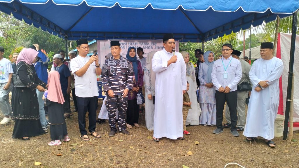 TNI AL, Bintan,– Komandan Lanal Bintan Kolonel Laut (P) Dr. Eko Agus Susanto, S.E., M.M., mendampingi Bupati Bintan Roby Kurniawan, S.P.W.K., menyerahkan sapi kurban Presiden RI Prabowo Subianto untuk disembelih di Masjid Jama’ Nurul Amin Sekera, Tanjung Uban, Jumat (06/06/2025).