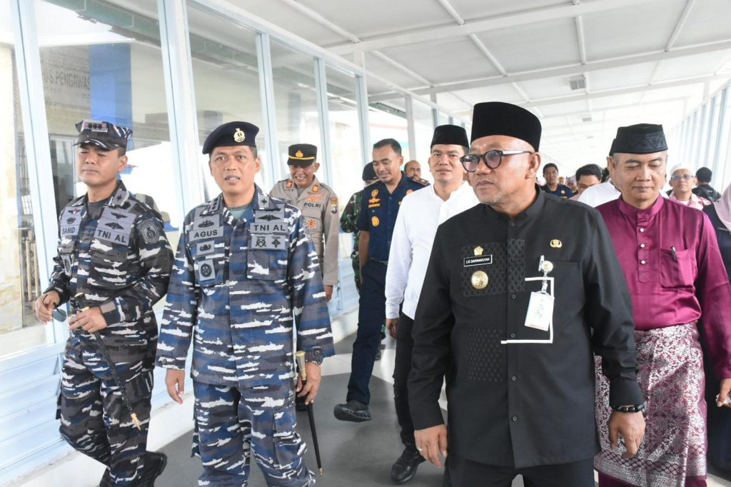 TNI AL, Tanjungpinang,- Bertempat di Pelabuhan Internasional Sri Bintan Pura, Kota Tanjungpinang, Komandan Lanal Bintan Kolonel Laut (P) Dr. Eko Agus Susanto, S.E., M.M., menghadiri kegiatan Penjemputan Jamaah Haji Kota Tanjungpinang Tahun 1446 H/2025 M dengan menggunakan 2 Unit Kapal Ferry Marina JB dan MV Oceana 6, Jum’at (13/06/2025).