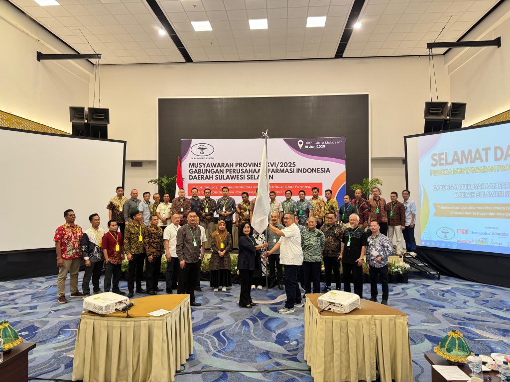 Makassar,- Musyawarah Provinsi (Musprov) XVI/2025 Gabungan Perusahaan Farmasi Indonesia Daerah Sulawesi Selatan telah sukses dilaksanakan dengan lancar dan tertib, bertempat di Mahoni Hall Hotel Claro, Jalan Andi Pangeran Pettarani Makassar. Kegiatan berlangsung sejak pukul 08.00 hingga 17.00 WITA dan dihadiri ±100 peserta dari berbagai unsur keanggotaan, yakni Pedagang Besar Farmasi (PBF), Apotek, dan Toko Obat, Rabu (18/6/2025).