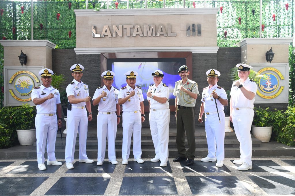 Bhakti Nala Yudha, Jakarta, 30 Juni 2025 – Komandan Lantamal III Jakarta Laksamana Pertama TNI Uki Prasetia, S.T., M.M. diwakili oleh Wakil Komandan (Wadan) Lantamal III Kolonel Laut (P) Ranu Samiaji, S.T., M.H., M.Tr.Opsla. menerima kunjungan kehormatan Komandan Kapal Perang Angkatan Laut New Zealand HMNZS Te Kaha (F-77) di Lobby Mako Lantamal III, Ancol, Jakarta Utara, Senin (30/6).