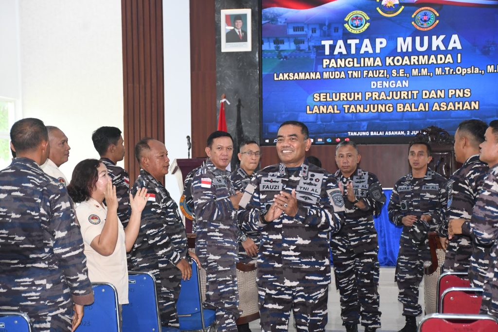 Dalam tatap muka bersama seluruh personel Lanal TBA, Pangkoarmada I menyampaikan rasa bangganya atas prestasi yang telah diraih dan menekankan pentingnya menjaga semangat dalam bertugas, serta merawat dan menjaga kebersihan lingkungan serta fasilitas markas.
