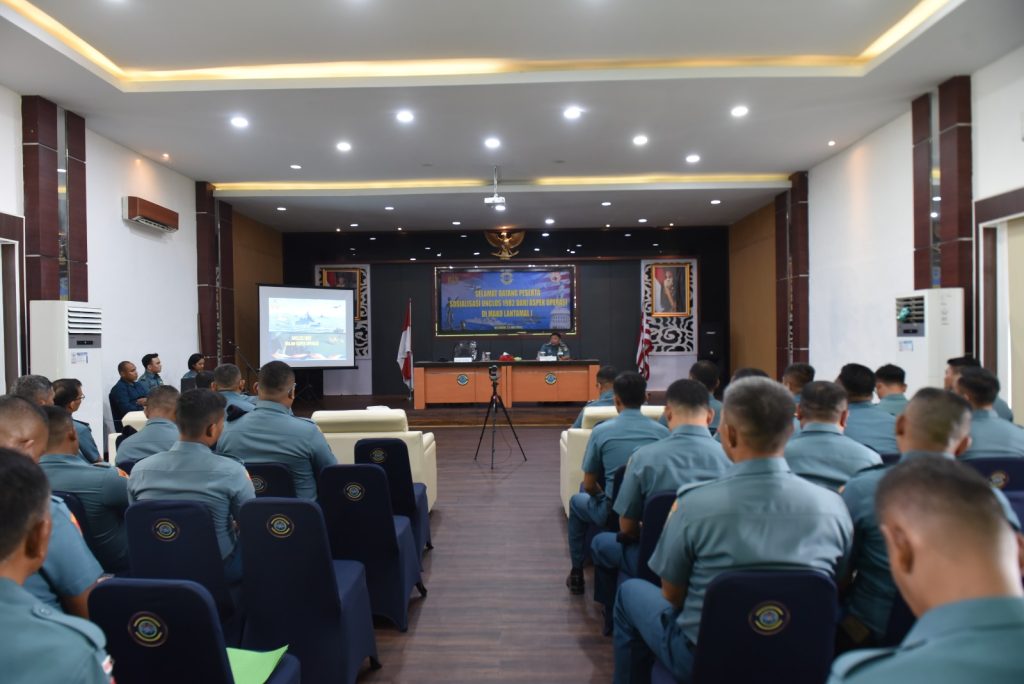 TNI AL, Belawan,- Prajurit Lantamal I mengikuti Sosialisasi Unclos 1982 dari Aspek Operasi oleh Tim Diskum TNI Angkatan Laut (Diskumal) dipimpin Kasubdis Kumlater Diskumal Kolonel Laut (H) Heri Supriyatno, S.H., M.H. bertempat di Gedung Jos Sudarso Mako Lantamal I Belawan, Selasa (22/07/2025).