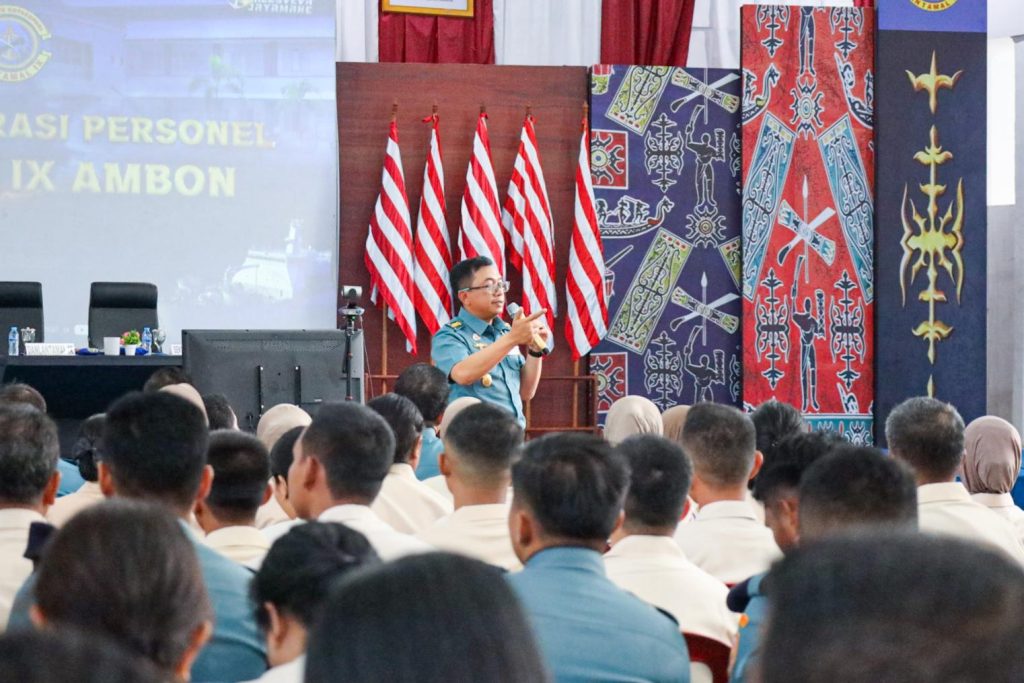 TNI AL, Ambon,- Komandan Pangkalan Utama TNI Angkatan Laut (Danlantamal) IX Ambon, Brigjen TNI (Mar) Suwandi, S.A.P., M.M., mengikuti rangkaian kegiatan Kunjungan Tim Bimbingan Teknis (Bimtek) Administrasi Personel, bertempat di Lobby Mako Lantamal IX Ambon, Halong, Baguala, Kota Ambon, Maluku, Kamis (24/07/2025).