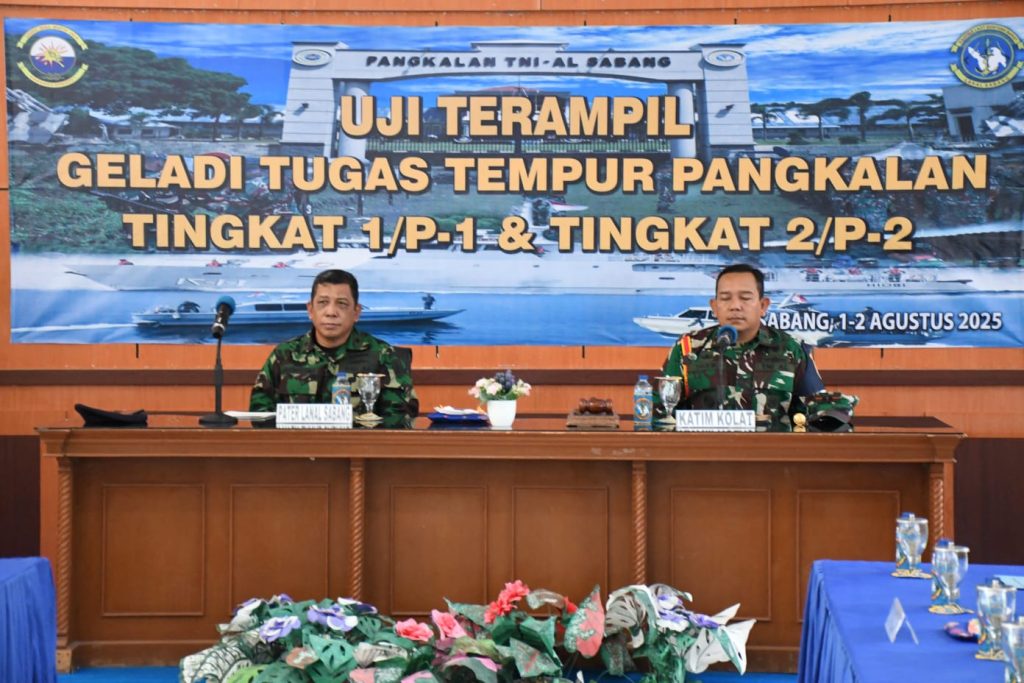 TNI AL, Sabang,- Pangkalan TNI Angkatan Laut (Lanal) Sabang melaksanakan Uji Terampil Geladi Tugas Tempur (Glagaspur) Pangkalan Tingkat P1 dan P2. Kegiatan bertujuan mengasah kemampuan dan meningkatkan naluri tempur prajurit, yang berlangsung di Mako Lanal Sabang, Jalan Yos Sudarso, Gampong Kuta Ateuh, Kecamatan Sukakarya, Kota Sabang, Jumat (01/08/2025).