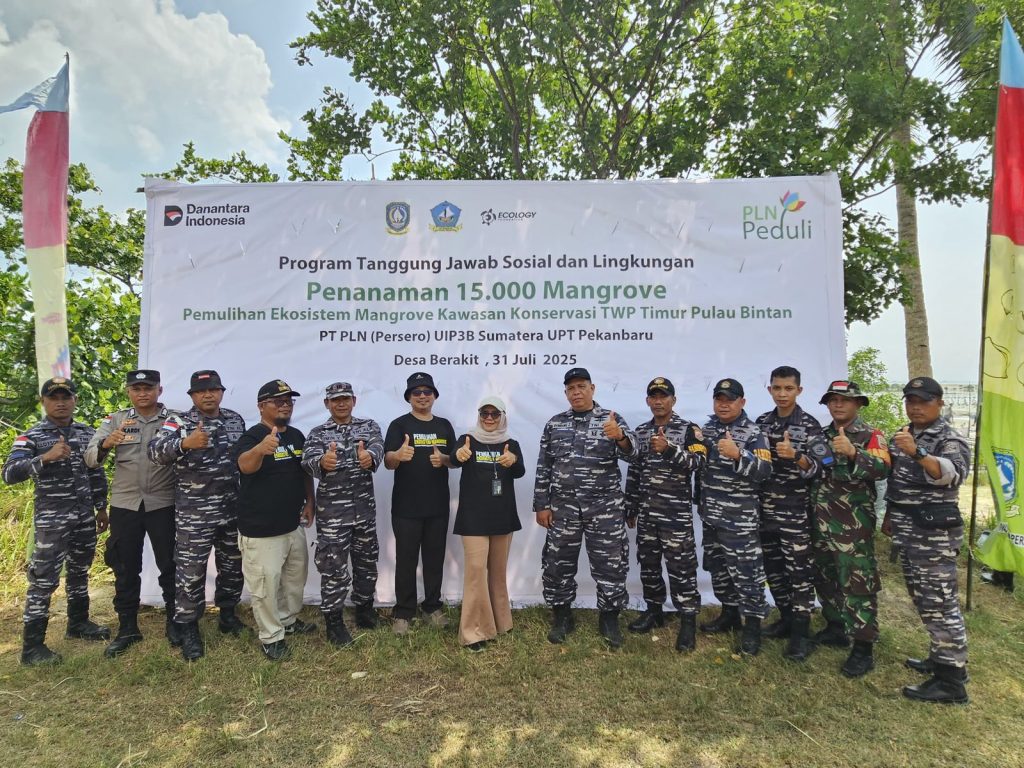 Penanaman 15.000 Bibit Mangrove (Rhizophora Stylosa) pada Program Tanggungjawab Sosial Lingkungan PLN Peduli Pemulihan Ekosistem Mangrove Berakit yang diselenggarakan oleh Yayasan Ecology Kepulauan Riau, bertempat di Pantai Penginam Berakit, Bintan, Kamis (31/07/2025).
