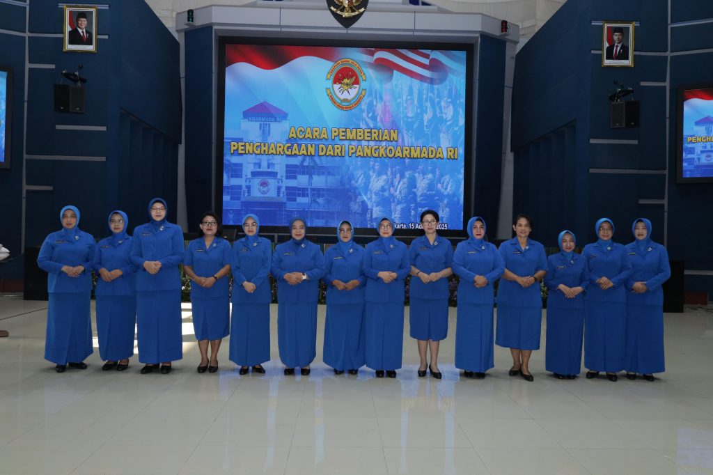 Komandan Kodaeral III Laksamana Muda TNI Uki Prasetia, S.T., M.M. didampingi Ketua Daerah Kodaeral (KDK) III Gabungan Jalasenastri Koarmada RI, Ny. Hening Uki Prasetia mengikuti acara penyerahan penghargaan kepada Danlantamal I s.d. XIV. Kegiatan ini berlangsung di Gedung OB.Syaaf, Mako Koarmada RI, Jakarta Pusat, Jumat (15/8).