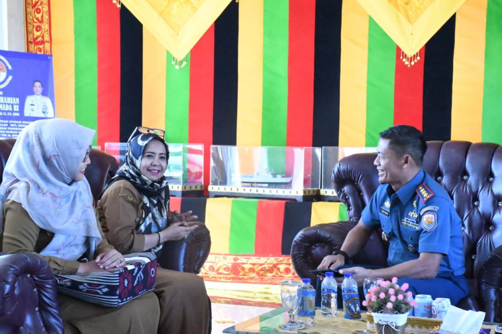 TNI AL, Sabang,- Komandan Lanal Sabang Kolonel Laut (P) Sadimin, S.E., M.Tr. Opsla., menerima kunjungan Plt. Kepala Kesbangpol Kota Sabang Fatimah Zainab, SKM., beserta Staf, bertempat di Lobby Malahayati Mako Lanal Sabang, Jalan Yos Sudarso, Kecamatan Sukakarya, Kota Sabang, Selasa (26/08/2025).