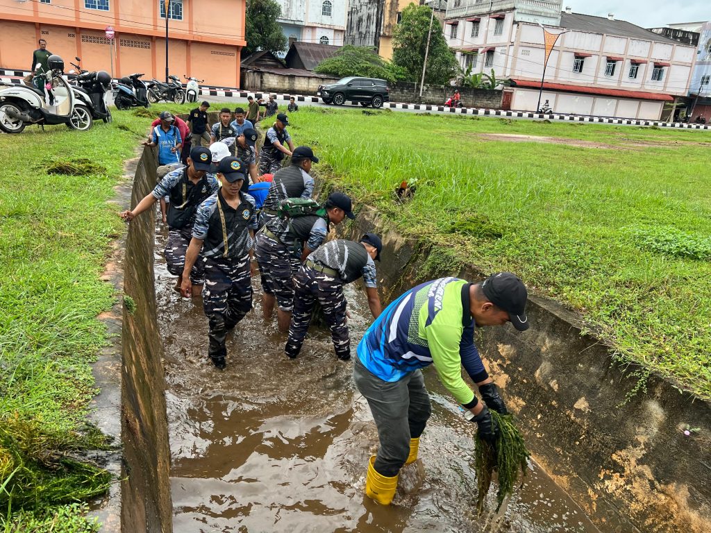 TNI AL, Dabo Singkep,- Sebagai wujud nyata dari pelaksanaan 8 Wajib TNI, Komandan Pangkalan TNI AL (Danlanal) Dabo Singkep Letkol Laut (P) Hendro Wicaksono, M.Tr.Opsla., meemerintahkan Prajurit Benteng Laut Perkasa untuk membantu masyarakat dalam melaksanakan gotong royong di tiga lokasi strategis wilayah Kecamatan Dabo, yaitu Pasar Ikan, Jalan Protokol, dan Pasar Sayur, Kamis (11/9/2025).