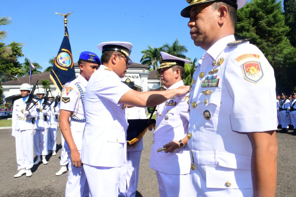 TNI AL, Bandung,- Tongkat kepemimpinan Komandan Pangkalan TNI Angkatan Laut (Danlanal) Bandung diserahterimakan oleh Komandan Komando Daerah Angkatan Laut III (Dankodaeral III) Laksamana Muda TNI Uki Prasetia, S.T., M.M., dari Kolonel Laut (P) Muhammad Taufik, M.Tr. Hanla., M.M., kepada Kolonel Laut (P) Erfan Indra Darmawan, M.Tr. Hanla., M.M., CIQaR., sekaligus Pengangkatan Ketua Cabang 9 Daerah Kodaeral III Gabungan Jalasenastri Koarmada RI Ny. Desma Erfan Indra oleh Ketua Daerah Kodaeral III Gabungan Jalasenastri Koarmada RI Ny. Hening Uki Prasetia, bertempat di Mess Pati R.E. Martadinata, Jalan dr. Setia Budi No. 73 Kota Bandung, Jum’at (12/09/2025).