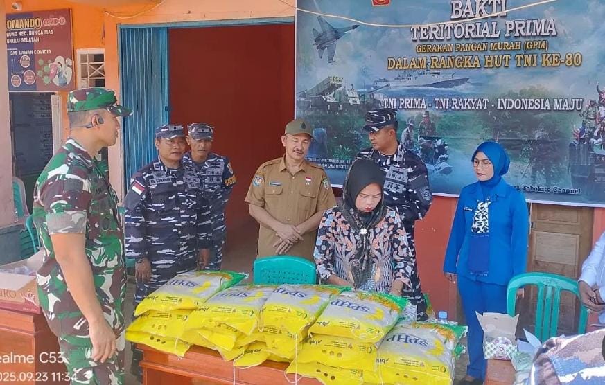 TNI AL, Bengkulu,- Dalam rangka menyambut HUT Ke-80 TNI Tahun 2025, Pangkalan TNI Angkatan Laut Bengkulu Gelar Karya Bakti Teritorial Prima, bertempat di Desa Padang Nibung, Kecamatan Bunga Mas, Kabupaten Bengkulu Selatan, Provinsi Bengkulu, Selasa (23/09/2025).