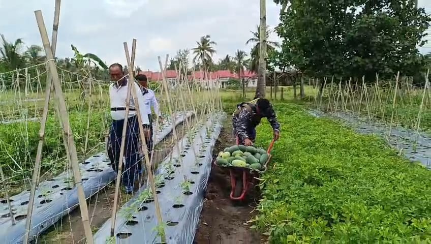 TNI AL, Bandung,- Pangakalan TNI AL (Lanal) Bandung dalam hal ini Pos TNI AL Pangandaran melaksanakan panen parsial tanaman ketahanan pangan jenis semangka (Citrullus Lanatus) yang ditanam di lahan TNI AL seluas 15.000 meter persegi atau 1,5 Hektar di Dusun Bojongsalawe, Desa Karang Jaladri, Kecamatan Parigi l, Kabupaten Pangandaran, Selasa (30/09/2025).