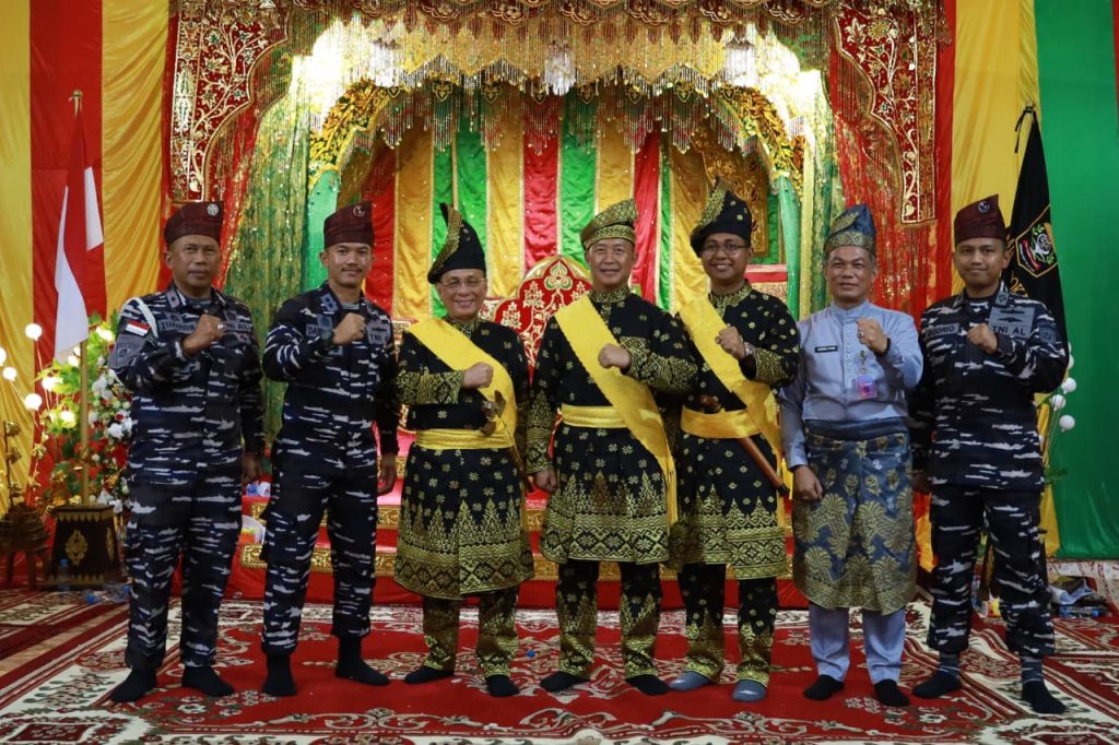 TNI AL, Dumai,- Bertempat di Gedung Adat Lembaga Adat Melayu Riau (LAMR) Kabupaten Rokan Hilir, Jalan Lintas Bagansiapiapi, Komandan Pangkalan TNI Angkatan Laut Dumai Kolonel Laut (P) Abdul Haris, S.E., M.M.D.S., bersama Ketua Jalasenastri Cabang 4 Daerah Kodaeral I Jalasenastri Gabungan Koarmada RI Ny. Dewi Abdul Haris menghadiri undangan khusus dari LAMR Kabupaten Rokan Hilir dalam rangka Penabalan (Penobatan) Gelar Adat Melayu Riau kepada Bupati Rokan Hilir H. Bistaman, Kamis (02/10/2025).