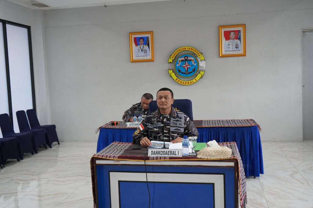 TNI AL, Belawan,- Komandan Komando Daerah Angkatan Laut I (Dankodaeral I) Laksamana Muda TNI Deny Septiana, S.I.P., M.A.P., didampingi oleh Aster Dankodaeral I Kolonel Mar Farick, M.Tr. Opsla., S.H., M.H., mengikuti video conference pengarahan Panglima TNI dalam rangka Perkemahan Sabtu Minggu (PERSAMI) Korps Kadet Republik Indonesia (KKRI) Gelombang Ke-3 Tahun 2025, bertempat di Ruang Rekreasi Makodaeral I, Jalan Serma Hanafiah No.1 Belawan, Sumatera Utara, Kamis (23/10/2025).