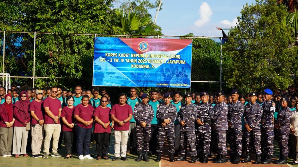 TNI AL, Jayapura, Jumat 31 Oktober 2025,- Dibawah langit biru Jayapura yang sarat semangat juang, gema langkah tegas 500 pelajar mengguncang halaman SMAN 3 Jayapura (Sekolah Negeri Khusus Sains dan Bahasa, Papua). Disanalah, Komando Daerah Angkatan Laut (Kodaeral) X membuka kegiatan Perkemahan Sabtu-Minggu (Persami) Korps Kadet Republik Indonesia (KKRI) Gelombang Ke-3, sebuah ajang pembinaan karakter yang menyalakan bara kedisiplinan, kepemimpinan, dan jiwa kebangsaan di dada generasi muda Papua.