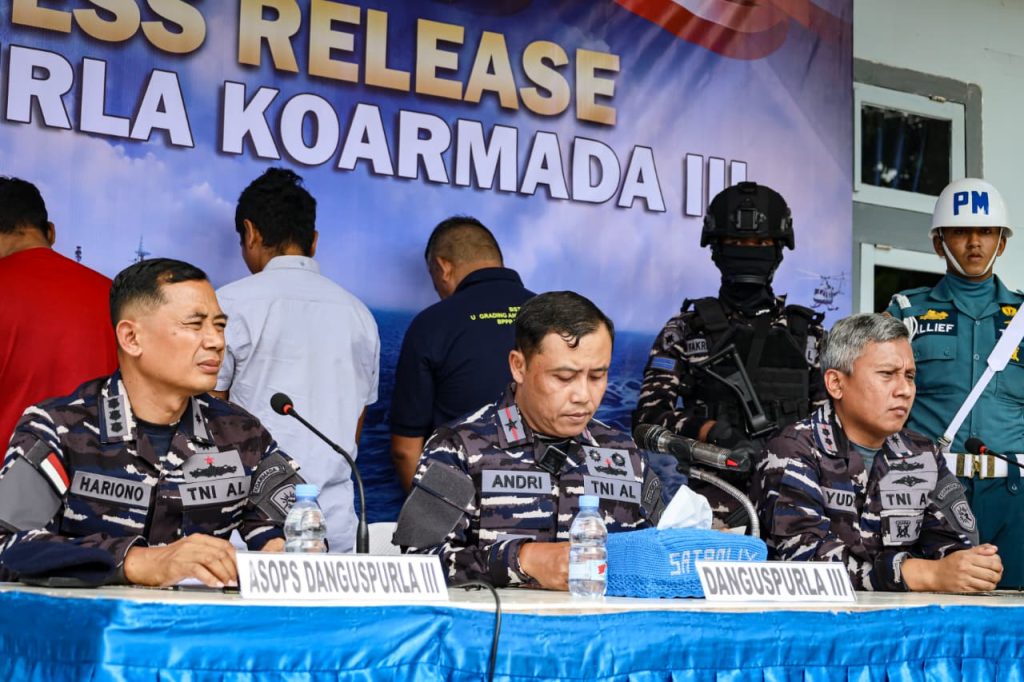 TNI AL,Ambon,- Guspurla Koarmada III gelar Press Release penangkapan KM. Bangka Jaya 9, bertempat di Kantor Nala Satrol Kodaeral IX, Minggu (16/11/2025)