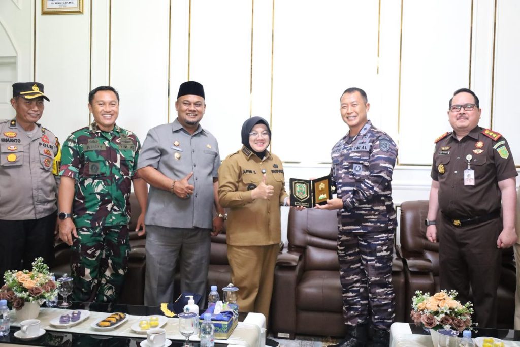 Hangat, ramah dan penuh penghormatan, Bupati Siak Dr. Afni Z, S.A.P., M.Si., sambut kedatangan Danlanal Dumai bersama rombongan. Kunjungan Danlanal Dumai merupakan momentum strategis untuk mempererat hubungan kelembagaan antara Pemerintah Kabupaten Siak dan Lanal Dumai. Berbagai isu strategis serta agenda kerjasama menjadi perbincangan hangat kedua pemimpin, mulai dari bidang potensi maritim, ancaman keamanan wilayah perairan Kabupaten Siak serta beberapa agenda pembangunan infrastruktur yang akan dilaksanakan di Kabupaten Siak.
