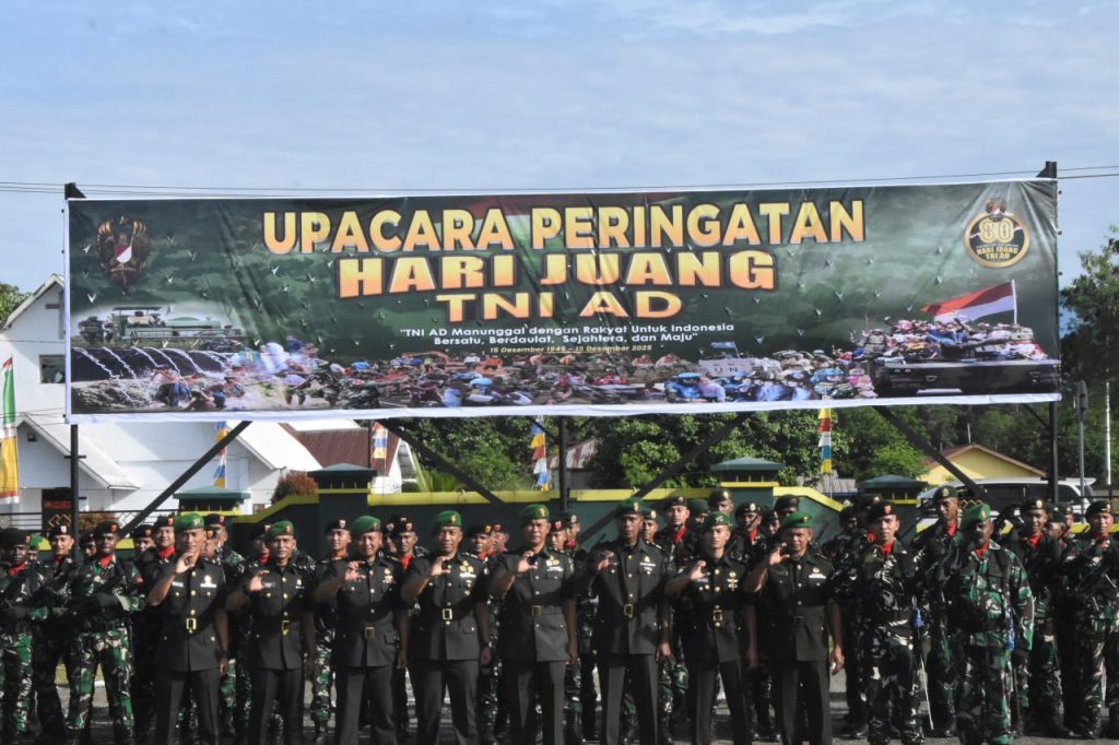 Timika – Dalam rangka memperingati Hari Juang TNI AD 2025, Kodim 1710/Mimika menggelar upacara peringatan Hari Juang Tentara Nasional Indonesia Angkatan Darat (TNI AD) ke-80 tahun 2025 di Lapangan Upacara Makodim yang dipimpin oleh Kasdim 1710/Mimika Mayor Inf Abdul Munir, Senin (15/12/2025).