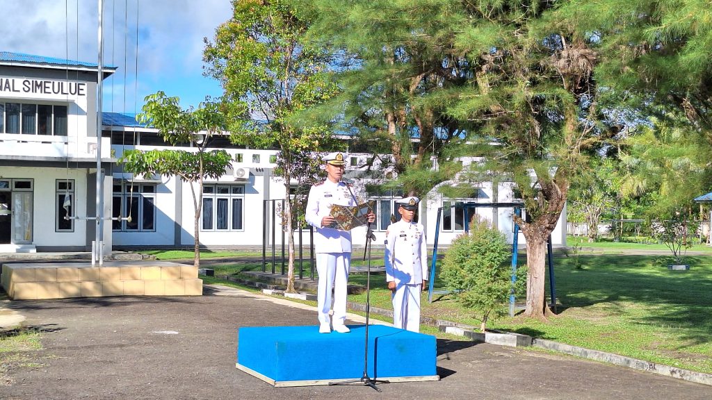 Danlanal Simeulue Letkol Laut (P) Wisnu Pryangga N, S.T., M.Tr.Opsla., bertindak sebagai Inspektur Upacara dan memimpin langsung jalannya upacara yang diselenggarakan di Lapangan Apel Mako Lanal Simeulue serta diikuti oleh seluruh Prajurit Lanal Simeulue. Upacara ini menjadi momentum penting untuk menanamkan semangat nasionalisme dan nilai-nilai bela negara.