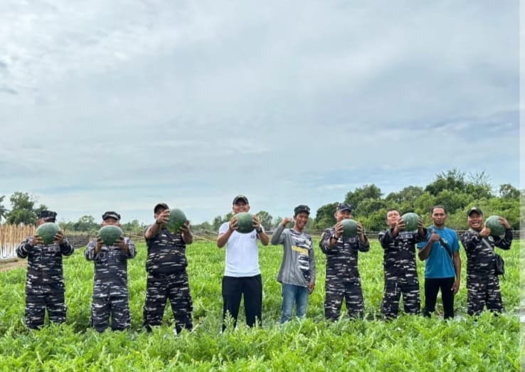TNI AL, Bengkulu,- Komandan Pangkalan TNI Angkatan Laut (Danlanal) Bengkulu Letkol Laut (P) Nurwahidin, S.H., M.Tr.Opsla., bersama Para Pejabat Utama (PJU) Lanal Bengkulu melaksanakan kegiatan penanaman dan panen buah melon, semangka dan Cabe di lahan ketahanan pangan binaan Lanal Bengkulu, yang berlokasi di RT. 08, Kelurahan Sumber Jaya, Kecamatan Kampung Melayu, Kota Bengkulu, Jumat (13/02/2026).