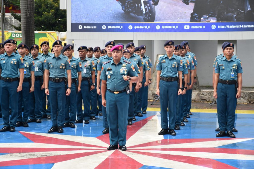 Jakarta, 18 Februari 2026 – Komandan Komando Daerah Angkatan Laut (Dankodaeral) III, Laksamana Muda TNI Uki Prasetia, S.T., M.M. didampingi Ketua Daerah Kodaeral III Gabungan Jalasenastri Koarmada RI, Ny. Hening Uki Prasetia, memberikan penghargaan kepada prajurit jajaran Kodaeral III, pada apel khusus di lapangan apel Makodaeral III, Jl. Gunung Sahari No. 2 Ancol, Jakarta Utara, Rabu (18/2).
